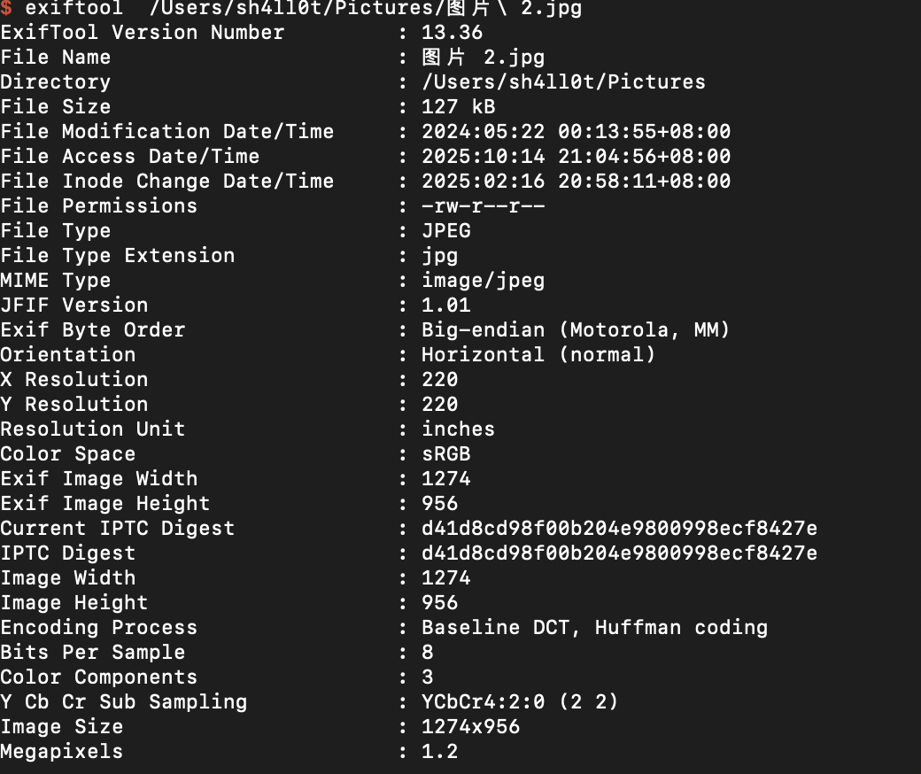 还有一个exiftool的工具,使用方法是 exiftool xxx.jpg