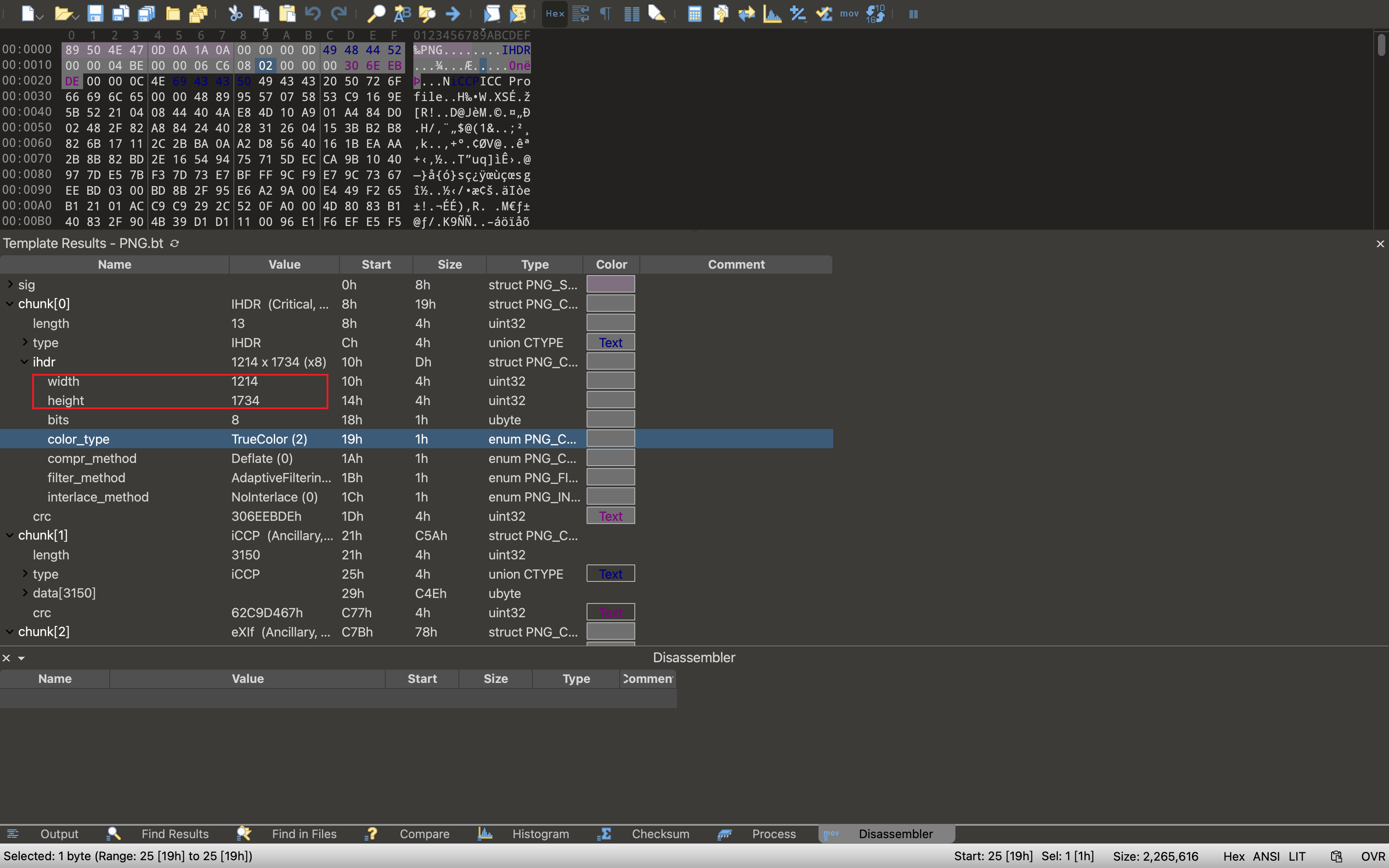 如何查看png长宽和CRC值: