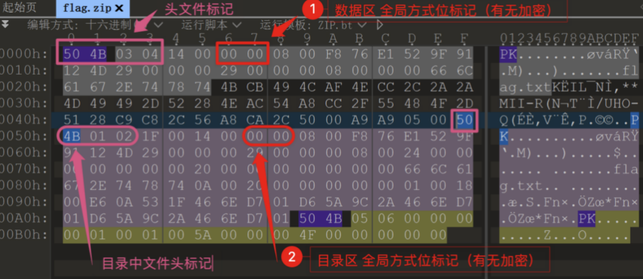 如果我们能得到其中一个被加密的文件,就可以通过相同的压缩方式进行压缩,压缩完后与带密码的压缩包进行比对。找出两个文件的不同点,就是我们需要找的 key 了。