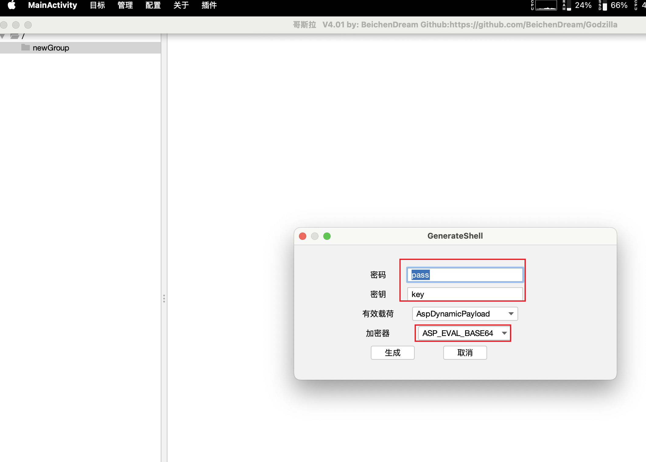 1.使用 Godzilla 生成 shell 文件