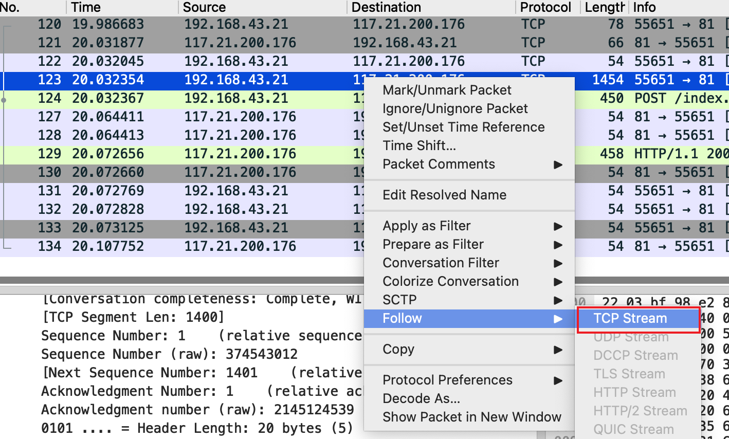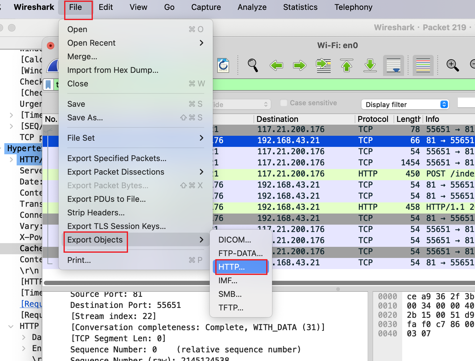 在 PHP_XOR_RAW 这种模式的流量相比于 PHP_EVAL_XOR_BASE64、PHP_XOR_BASE64 模式就只是少了 base64 加密,其他加密操作其实是一样的。因此我们可以先将密文通过 wireshark 的“文件->导出对象->HTTP”导出对应的密文文件,再对其进行解密即可。