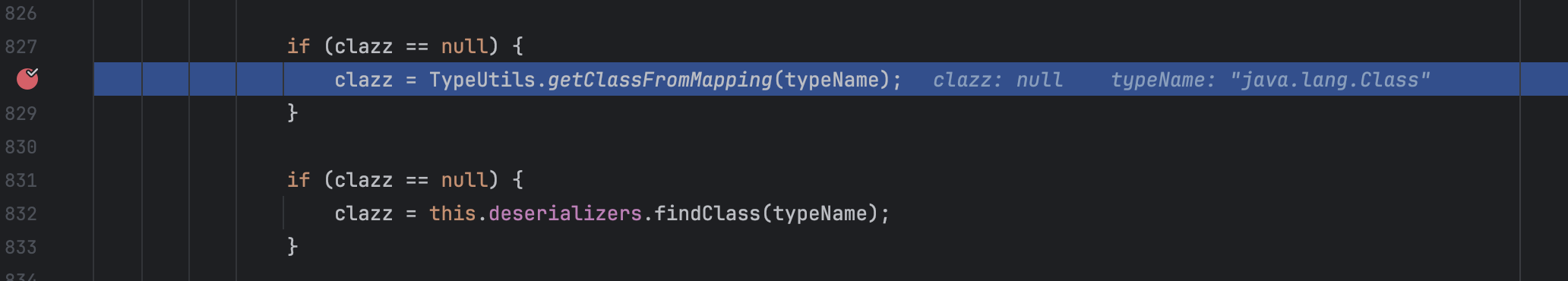 因此我们无法向 deserializers 中写入值,也就在其中读出我们想要的恶意类。所以我们的目光转向了 TypeUtils.getClassFromMapping(typeName)。